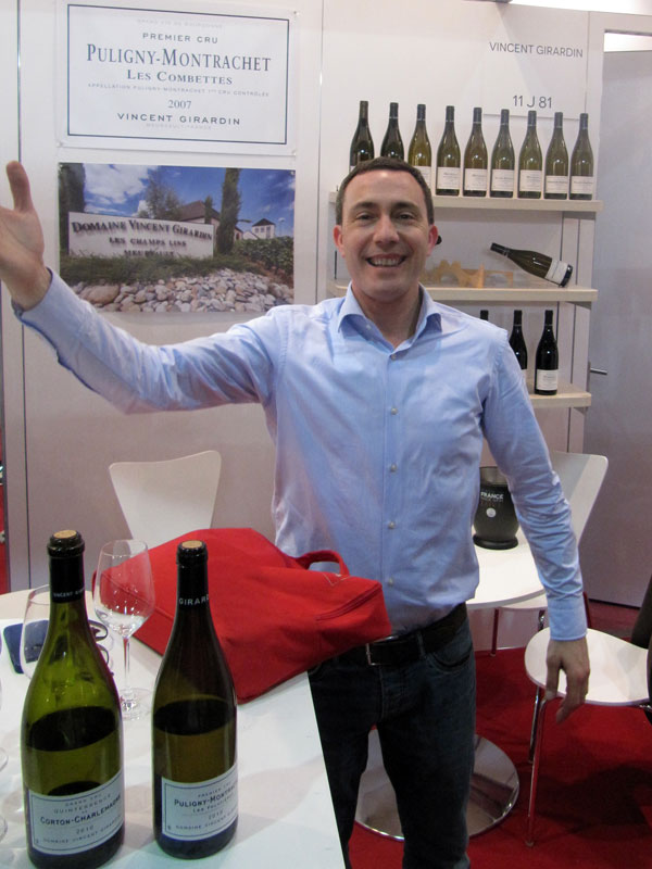 Na konci prvního pracovního dne, kdy bylo načase se trochu odměnit, jsem potkal v expozici burgundského vinařství Vincent Girardin svého kamaráda Marca (viz foto 5), který mě přivítal slovy „I’ll take care of you…“. Což znamenalo hodinovou degustaci parádních vín zakončenou silnou trojkou Puligny-Montrachet „Les Folatières“ 1er Cru 2010, Corton-Charlemagne „Quintessence“ Grand Cru 2010 a Batard-Montrachet Grand Cru 2008. Je zajímavé, jak některá vína dokážou člověka po celodenním pochodování a „tlačení se“ úplně zrelaxovat…