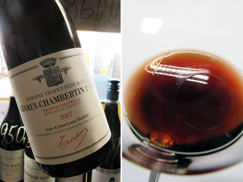 Domaine Trapet, Gevrey-Chambertin „Petite Chapelle“, 1er Cru, 2009 (foto 6)Od vůně šťavnaté, komplexní, vyvážené a elegantní, minerálně-ovocné (červené plody, třešně, výrazná citrusová linka), s dotekem bylin a skvěle dávkovaným sudem. Víno má pevnou a přesnou strukturu, je šťavnaté a harmonické, v těle plné, má citelné hladké ovocné taniny a dlouhou perzistenci. Dílo mistra, byť ve složitějším ročníku. S trochou přípravy se dá užívat hned.