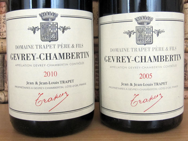 Domaine Trapet Père & Fils, Gevrey-Chambertin, AOC, 2005 (foto 3)Ve vůni plnější, elegantní, homogenní a intenzívní, lehce nazrálé, komplexní, minerálně-ovocné (třešně, jemná citrusová linka), s tóny čaje, bylin a dotekem sudu. Chuť dokonale navazuje. Víno je velmi dobře postavené, šťavnaté, harmonické a chuťově bohaté, v těle plnější, má elegantní projev, citelné hladké ovocné taniny a dlouhou perzistenci. Geniální provázanost všech složek vůní a chutí, vše dokonale vybalancované, mineralita není na první dojem tak výrazná jako u 2010 a vše působí tak nějak přirozeně kompaktně. Báječné víno na vrcholu sil, na němž ještě s přehledem pár zim vydrží.