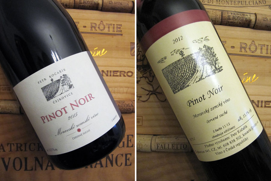 Pinot Noir „Novosady“, zemské víno, 2015 (foto 8a)Petrova vlajková loď, vyrobená z trojice francouzských klonů Pinotu Noir s označením 777, 828 a 115. Vůně je intenzívní, plnější, vyvážená, elegantní a podmanivá, minerálně-ovocná (třešně, jemná citrusová linka). Chuť dokonale navazuje. Víno má pevnou a přesnou strukturu, je šťavnaté a úžasně harmonické, v těle střední až plnější, má střední vyzrálé ovocné taniny a dlouhou perzistenci. Smekám…