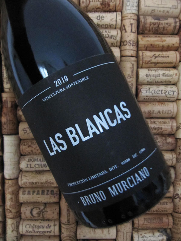 Bruno Murciano, Las Blancas, DO Valencia, 2019 (foto 2)Cuvée z odrůd Marisancho (60 %), zbytek po 10 % Merseguera, Macabeo, Malvasia a Moscatel. Nadmořská výška 900 až 1000 mnm, jihovýchodní expozice, hlinitopísčitá půda s vápencovým položím, vinice v průměru 80 let. Zrání 6 měsíců ve tříletých 500litrových sudech.
