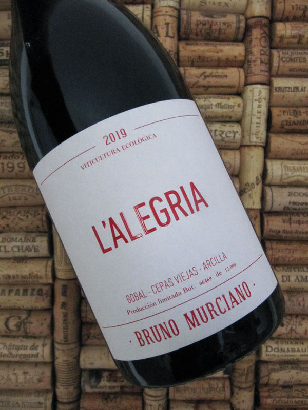 Bruno Murciano, La Alegria, DOP Utiel Requena, 2019 (foto 3)100 % Bobal z vinice Las Brunas, 900 mnm, jihovýchodní expozice, podloží vápenec a jíl, vinice 85 let. Zrání 12 měsíců ve tříletých 500litrových sudech.