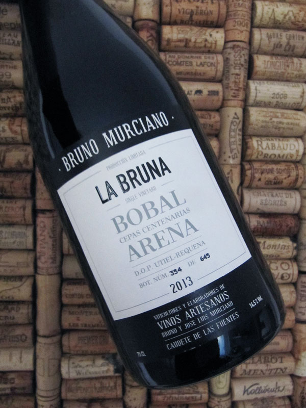 Bruno Murciano, La Bruna, DOP Utiel Requena, 2013 (foto 5)100 % Bobal z 0,5 ha nejlepší (Grand Cru) části vinice Las Brunas, 950 mnm, písčité podloží, více než 100leté vinice. Zrání 36 měsíců v 600litrových tříletých sudech. Vyrábí se pouhých 650 lahví ročně.