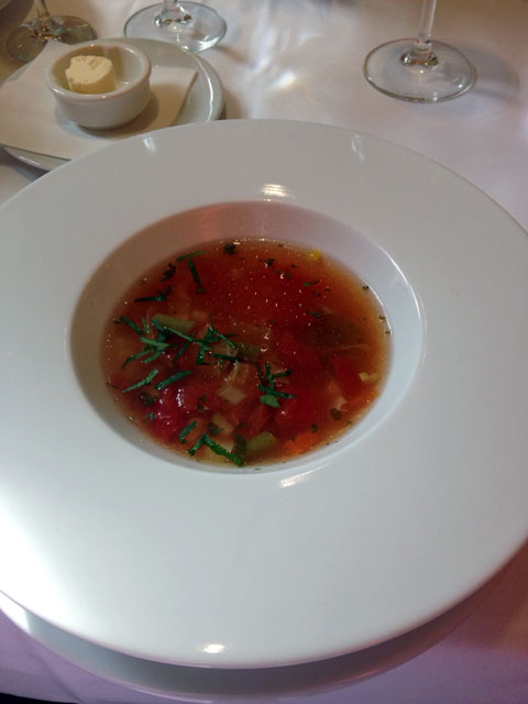 Příjemná a pozorná, pěkně založené stoly v jídelní části, oddělené prostory, které v jednotlivých místnostech restaurace poskytují přiměřenou porci soukromí a klidu. Jedinou drobnou nedokonalostí bylo přinesení sklenic typu Bordeaux na Pinot Noir. Po upozornění připravila obsluha sklenice správného tvaru.