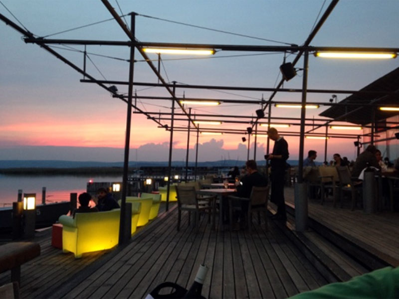 Restaurace se nachází v městečku Neusiedl am See, na břehu stejnojmenného jezera Neusiedler See v Burgenlandu v Rakousku. Součástí moderní restaurace je terasa se soukromým molem a přístavištěm pro lodě. Interiér je moderní, jedné stěně vévodí prosklené vitríny s víny, které zdobí různobarevné nepřehlédnutelné etikety. My jsme využili, vzhledem ke krásnému dubnovému počasí, terasu, kde jsme si užili i efektní západ slunce. Pro romantické duše jako stvořené.
