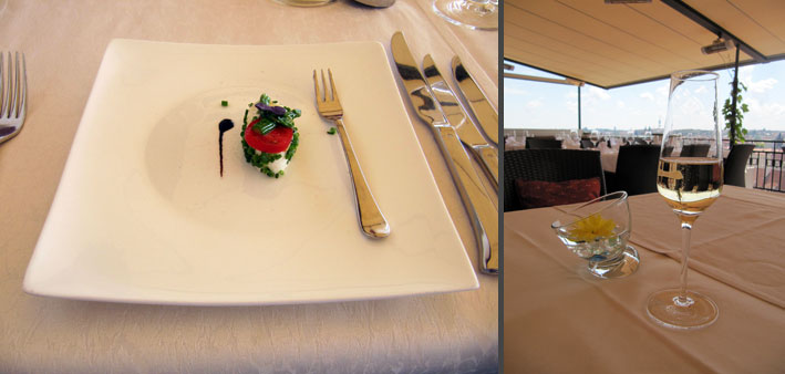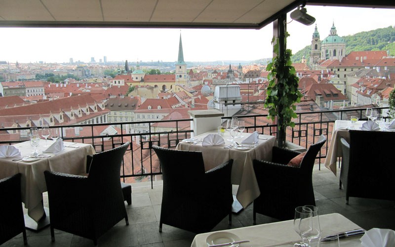 Pohled na panorama Prahy se stovkami věží a věžiček, členitá záplava cihlových střech domů na Malé Straně a paprsky slunce odrážející se na vinných hladinách naplněných skleniček podvědomě pohánějí turisty prát se o místa v první řadě u zábradlí a nepřítomně vzdychat blahem. Našinec na chvíli cítí hrdost češství a možná se rozpomene na hodiny historie…