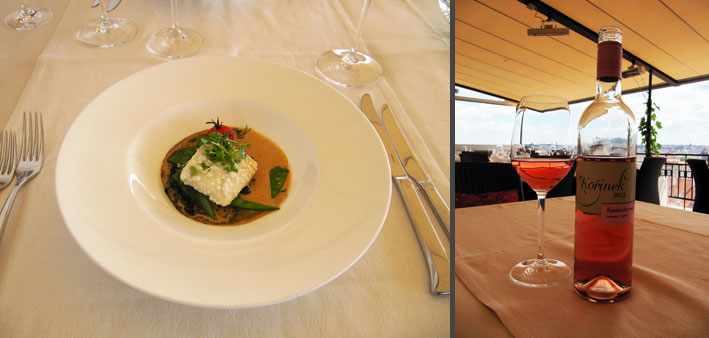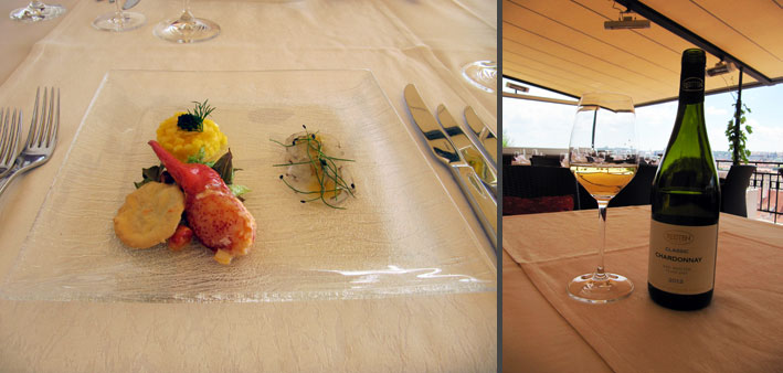 Z ochutnaných jídel musím vyzdvihnout mousse z kozího sýra „Buche Affine“ s marinovaným zeleným chřestem a pikantním medovým sosem, který si nad očekávání skvěle rozuměl s Champagne Taitinger Brut Réserve; marinovaného kanadského humra v citrusovém oleji podávaného s carpacciem z tygřích krevet a kaviárem „Ossetra“, který je tak trochu „dvoustylový“. Humr s mangem a kaviárem výborně ladí s Chardonnay, p.s., 2012 z Vinařství Reisten, zatímco krevetí část si tyká spíše s Taittingerem.