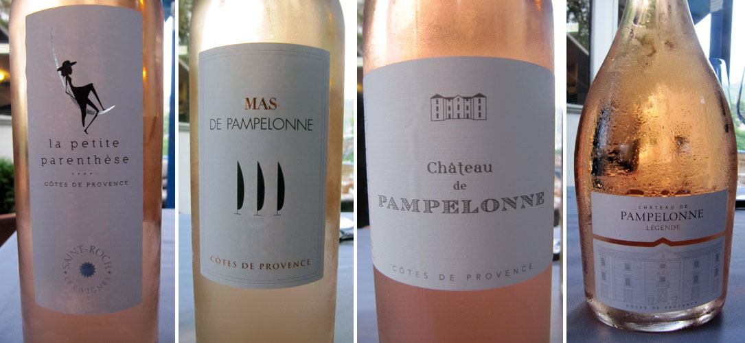 Château de Pampelonne, Mas de Pampelonne rosé, 2013 je víno podobného užití, v barvě žluto-naoranžovělé, spíše jemné víno na bázi citrusů (primárně pomerančů) s lehkou mineralitou. Dobře postavené, šťavnaté, přímé, srovnané, se střední perzistencí.