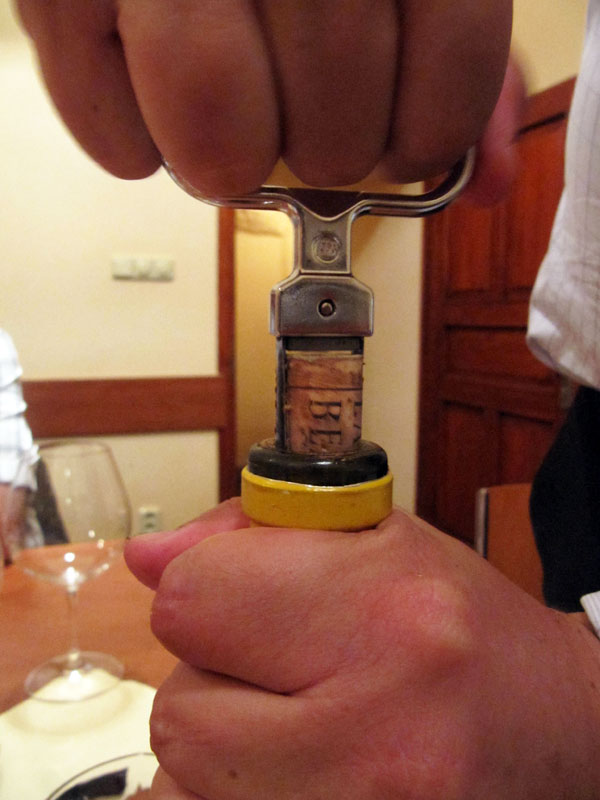 Tentokrát jsme chutnali „jen“ šest vín, což je za mě počet naprosto ideální. Člověk má prostor se jim věnovat důkladně, a pokud jsou rozlévána v rozumném množství, vyjde to při devíti lidech na krásná dvě kola. Miluju to srovnání, kdy dojmy a poznámky z prvního kola degustace mohu upravovat podle v čase se vyvíjejícího projevu. Vína byla z důvodu obav o jejich stav otevírána až těsně před ochutnávkou a tak se dvě kola opravdu hodila. Obavy se totiž nenaplnily a všechny vzorky byly v báječné kondici.