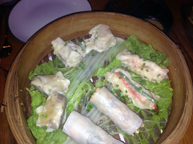 Fat Gajah nabízí především speciální knedlíčky a nudle. Knedlíčky podávají jak vařené v páře, tak smažené, s různými omáčkami. Masové, zeleninové i s mořskými plody a rybami. My jsme vyzkoušeli Tasting set, který zahrnoval čtyři druhy knedlíčků vařených v páře a pět druhů smažených. Ze smažených nás nejvíce zaujaly jehněčí, tuňákové a krevetové (s rýží), z vařených v páře pak krevetové. Menu obsahovalo i čtyři různé omáčky - sójovou, sladké chilli, pálivé chilli a z kešu oříšků. Z nudlového menu jsme vybrali rajčatové nudle s krabem. Krabí maso bylo připraveno jako fas se špenátem, vše podáváno v omáčce.