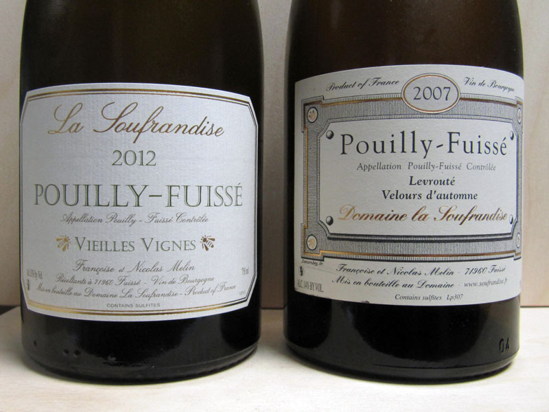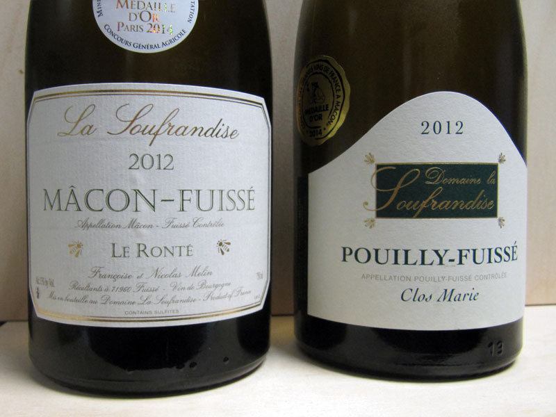 Pouilly-Fuissé „Clos Marie“, 2012 je pro mě asi nejzábavnějším vínem z portfolia La Soufrandise. Sice má nejošklivější etiketu, ale ovocný profil bílých grepů, výrazná mineralita a dotek bylinek je opravdu zajímavý. Víno je velmi dobře postavené, hodně šťavnaté, v těle plnější, srovnané, má delší perzistenci a potenciál zrání.