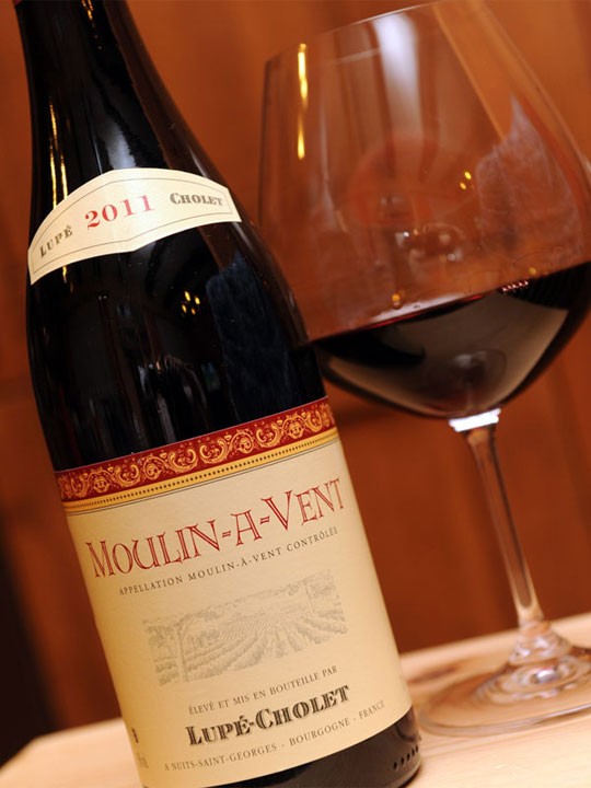Moulin-à-Vent od Lupé-Choleta má příjemně ovocnou vůni, ve které se typicky pro Gamay objevuje drobné černé ovoce s lehkými květinovými tóny a náznakem minerality. Víno je středně dlouhé, poměrně dobře strukturované a určitě serióznější než Nouveau.