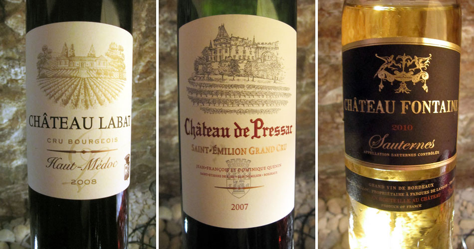 Pozitivně mě oslovilo Château Labat, Cru Bourgeois, 2008 (50 % Merlot, 50 % Cabernet) z Haut-Médoc. Jemné, elegantní minerálně-ovocné víno (třešně, švestky, citrusová linka), velmi dobře postavené, se středním tělem, feminním projevem, vyzrálými ovocnými taniny a delší perzistencí. Víno na vrcholu.