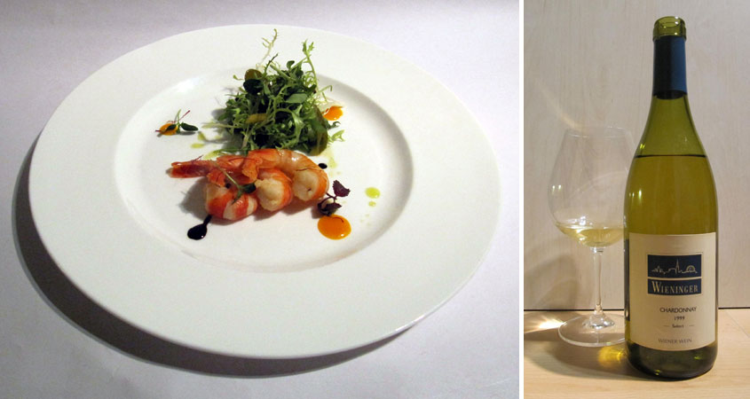 Z pěti lidí nakonec čtyři vybrali jako vítěznou kombinaci pošírovaných krevet v citrusovém dresinku s Chardonnay od Wieningera a jeden snoubení restovaných krevet s telecím fondem s Puligny. Ale o to tu vlastně nešlo. Byla to… zábava neskutečná. Naplnění smyslů. Úžasná příležitost si vyzkoušet, jak moc záleží na spojení dvou nebo více „hráčů“ do harmonie celku.