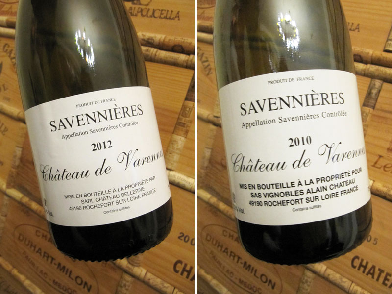 Château de Varennes, Savennières, AOC, 2012 má oproti Domaine FL odlišný styl. Je šťavnaté, plnější, minerálně-ovocné, ale spíše do citrusů a grepové kůry, se štychem medu; striktností připomíná mladé Chablis. Má pevnou a přesnou strukturu, v průběhu je přímější, srovnané, s delší až dlouhou perzistencí s medově-slanou dochutí a delším potenciálem zrání. Výborná volba pro milovníky striktnějších vín, vyžaduje čas na získání komplexnosti. Cena kolem pěti stovek je férová.