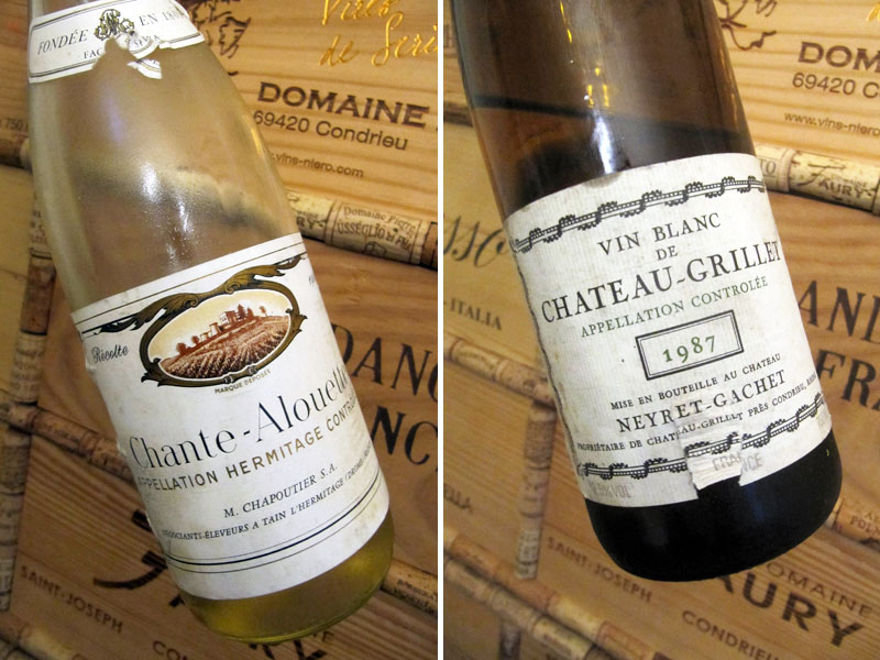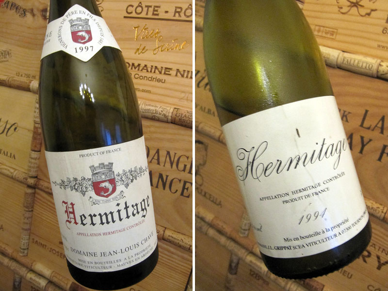 Domaine J. L. Chave je na Rhôně, společně s Chapoutierem, obrovský pojem. Rodinné vinařství funguje již od roku 1491, má 15 ha cca 70 let starých keřů, dělá pouze dvě vína: Hermitage Rouge a Blanc, přičemž blanc má delší archivační potenciál. Ročník 1997 byl výborný (Parker 90 bodů), odrůdově 80 až 85 % Marsanne, zbytek Roussanne (foto 3a).