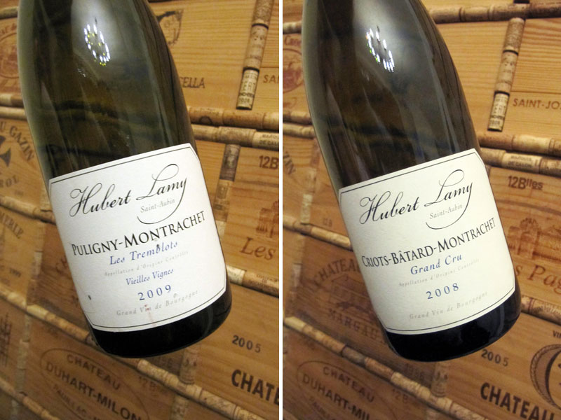 Hubert Lamy, Puligny-Montrachet „Les Tremblots“, Vieilles Vignes, AOC, 2009Vůně je jemná a srovnaná, hodně do bílých květů, s ovocností citrusů včetně nastrouhané kůry, a lehkou mineralitou. Je dobře postavené, šťavnaté a srovnané, má střední tělo a delší perzistenci. Zařazením po dvou předešlých expresívních 1er Cru dostalo hodně „za uši“, přesto je to hezké víno, které potěší. Zvlášť když se nepodíváte na jeho cenovku.