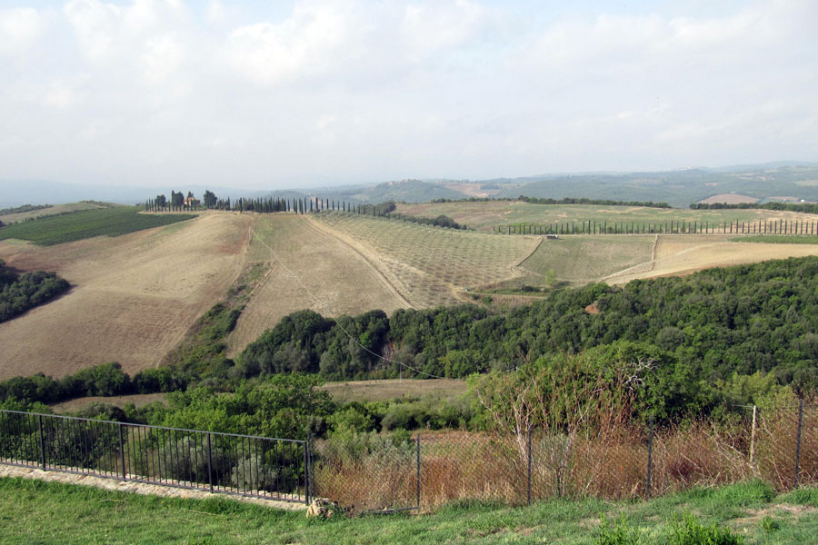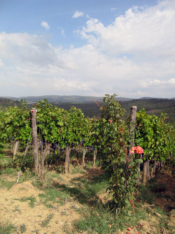Lionel pěstuje pouze tři vína: Rosso di Montalcino, Brunello di Montalcino (v nejlepších letech dělá i Riservu) a Ombrone, což je kupáž francouzských odrůd Cabernet Sauvignon a Merlot s místním Sangiovese Grosso. Původně měly vinice (foto 6) pouhé 3 ha (plus 1 ha olivovníků), nedávno vysázeli další 3 ha. Veškerá práce na vinici (foto 7) probíhá organicky, bez použití chemických látek a výhradně ručně. Zní to téměř jako klišé, přesto jsou vína z Cupana hodně jiná a uchvátí na první přičichnutí. Po ochutnání spousty Rosso i Brunello začne člověku vrtat hlavou, cože to tady vlastně dělají jinak. A tak jsem se v úžasném prostředí jeho domu zeptal Lionela napřímo.