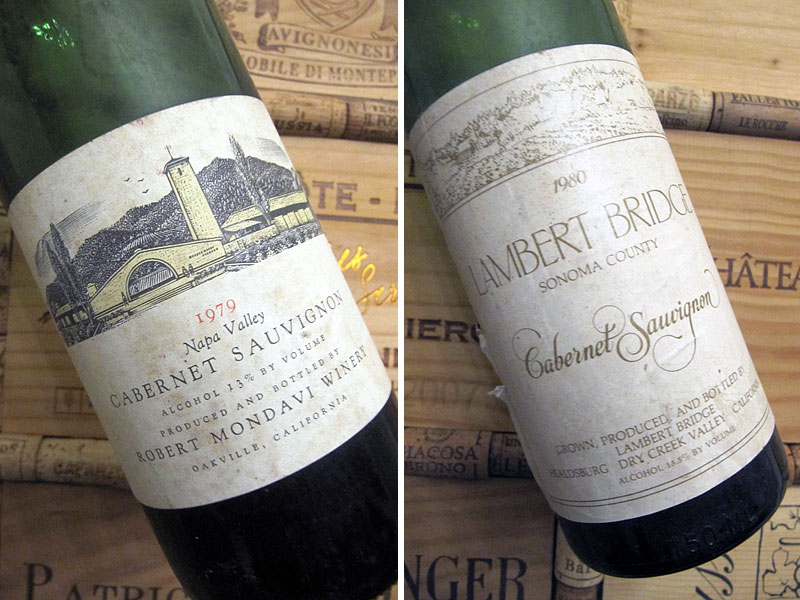Lambert Bridge, Sabernet Sauvignon, 1980 (foto 2b)Ve vůni hodně nazrálé (kompotová šťáva z třešní, zavařená červená řepa, vařená brokolice, jemná grepová hořčina), vysoký sud. Chuť navazuje. Víno je velmi dobře postavené, šťavnaté, má výrazné vyzrálé ovocné taniny, plnější tělo a delší perzistenci. Přestože je za vrcholem a je v něm spousta zeleninových tónů, působí velmi kompaktně a ne úplně nepříjemně. Ve spojení s jídlem by se dalo i užít.