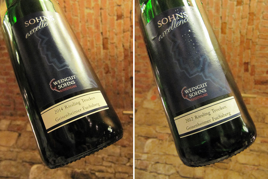 Excellence Fuchsberg Riesling Trocken, 2012 (foto 4b)Ve vůni svěží, nazrálé a srovnané, minerálně-ovocné (do tropických plodů, citrusy), s tóny petroleje. Chuť navazuje. Víno je velmi dobře postavené, v těle plnější, s delší perzistencí a slaně-hořčinkovým závěrem. Stejné víno z lepšího ročníku v počínající fázi nazrávání.