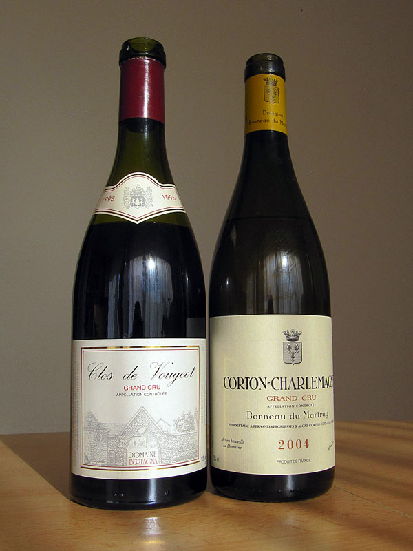 Není náhodou, že jsou obě z Burgundska. K Burgundsku mám totiž pocitově nejblíž. Obvykle už v tomto ročním období na Pinot Noir nesahám, ale život je občas i o porušování (nepsaných) pravidel. A tak když kamarád přišel s návrhem ochutnat Corton-Charlemagne od Bonneau du Martray, slušelo se nabídnout adekvátního sparingpartnera. Volba nakonec padla na Clos de Vougeot od Domaine Bertagna.