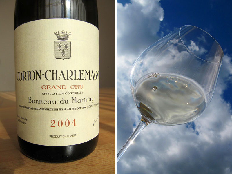 Druhé víno je mladší a je bílé, z odrůdy Chardonnay. Je od rodinného vinařství Domaine Bonneau du Martray, které se vinařením baví již téměř dvě stovky let. V Burgundsku, kde je běžné vlastnictví pár řádků révy, je toto vinařství známé vlastnictvím cca 10 ha kontinuálních vinic v oblasti Corton. Vyrábějí pouze dvě (Grand Cru) vína; červený Corton a bílý Corton-Charlemagne. Chce-li člověk přijít na to, proč jsou jejich vína tak výjimečná, stačí navštívit Grands Jours de Bourgogne a porovnat je ve stejném ročníku s víny dalších vinařů z této apelace.