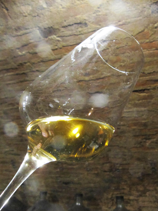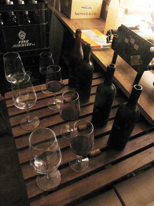 V chladných prostorách sklepa hledáme identifikační popisky u vín, degustujeme, povídáme o vínech a vinaření, a já v rychlosti píšu poznámky, které naskakují pod přinášená vína: