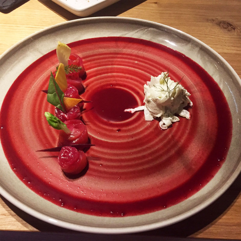 Z předkrmů jsou skvělé „Hříbky, lišky, pošírované vejce, topinambur a fontina sýr“, ke kterému se obzvláště hodí kulaté burgundské chardonnay. V hlavních chodech exceluje „Mořský ďas, černý kuskus, zelenina, humří bisque“. Zde velmi dobře poslouží také bílé burgundské či jiné minerální víno s dostatečnou strukturou, která unese skvěle zvládnutý humří bisque.
