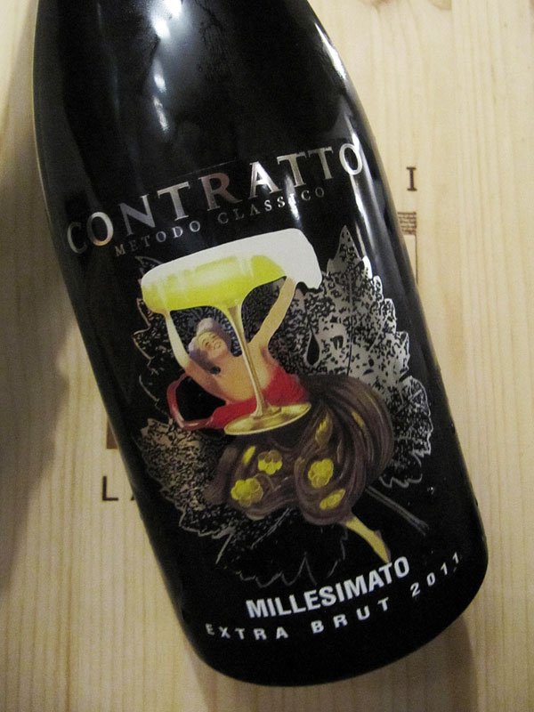 Contratto, Spumante Extra Brut Metodo Classico, 2010 (foto 3)Klasickou metodou kvašení na lahvi udělané cuvée z 80 % Pinotu Noir a 20 % Chardonnay strávilo na kvasinkách 36 měsíců. Ve vůni je elegantní, intenzívní, plné a vyvážené, ovocné (citrusy, žluté plody), s citelnou minerální slaností a dotekem medu, lehce oxidativní, s podtónem sudu. Chuť dokonale navazuje. Víno má pevnou a přesnou strukturu, je úžasně šťavnaté a harmonické, v těle plnější, má mírně ostřejší perlení a dlouhou perzistenci. Dá se říct, že je aktuálně na vrcholu. Výborné víno, které by si člověk naslepo mohl splést se Champagne.