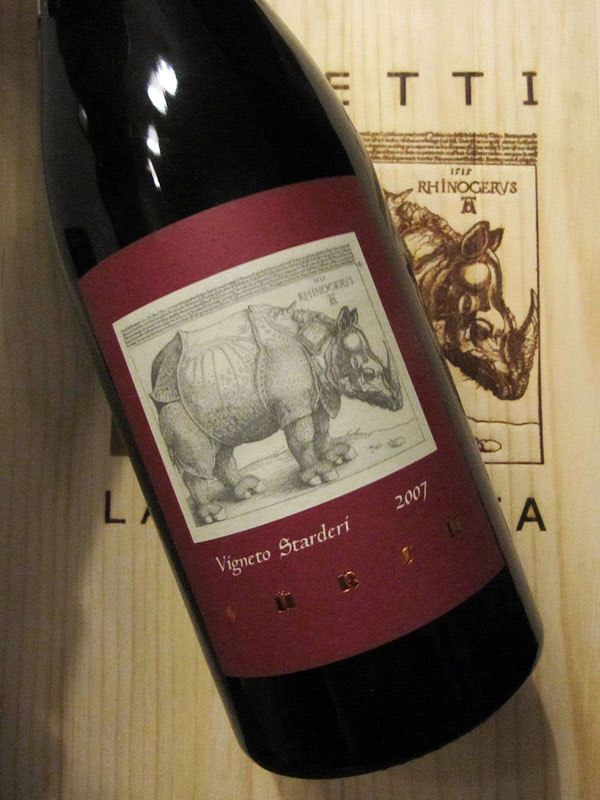 Jemně nakrájená klobáska z divočákaa La Spinetta, Barbaresco „Starderi“, DOCG, 2007 (foto 7)Noblesní, vyvážená, intenzívní, jemná, ale sebevědomá vůně, ovocná (do červených plodů, primárně třešní), s výraznou mineralitou. Chuť dokonale navazuje. Víno má pevnou a přesnou strukturu, je krásně šťavnaté, v těle plnější, má výrazné vyzrálé ovocné taniny, harmonický průběh, velmi dlouhou perzistenci a obrovský potenciál zrání. Víno z kategorie TOP, které má to nejlepší před sebou a aktuálně ze své krásy odhaluje jen trochu… Ale se šťavnatou kančí klobáskou si rozumněli báječně.