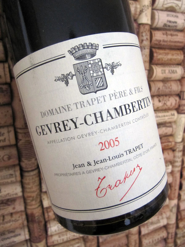 Domaine Trapet Père & Fils, Gevrey-Chambertin, AOC, 2005 (foto 3)Ve vůni plnější, elegantní, homogenní a intenzívní, lehce nazrálé, komplexní, minerálně-ovocné (třešně, jemná citrusová linka), s tóny čaje, bylin a dotekem sudu. Chuť dokonale navazuje. Víno je velmi dobře postavené, šťavnaté, harmonické a chuťově bohaté, v těle plnější, má elegantní projev, citelné hladké ovocné taniny a dlouhou perzistenci. Geniální provázanost všech složek vůní a chutí, vše dokonale vybalancované, mineralita není na první dojem tak výrazná jako u 2010 a vše působí tak nějak přirozeně kompaktně. Báječné víno na vrcholu sil, na němž ještě s přehledem pár zim vydrží.