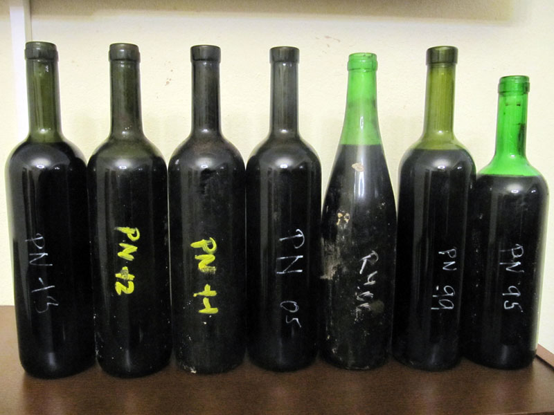 Proč použitým hroznům? Chutnali jsme vína až do roku 1995 (foto 1 a 2) a na toto víno byly všechny hrozny nakoupené. Další ročníky už byly částečně z hroznů z vinic v Mirkově režii a částečně z nakoupených hroznů jiných pěstitelů. Tento poměr se postupem času měnil, v ročníku 2005 byla nakoupených hroznů pouhá čtvrtina. Poslední tři ročníky, které jsme chutnali, už byly z jediné velkopavlovické vinice Išperky (foto 3 – oranžové označení).