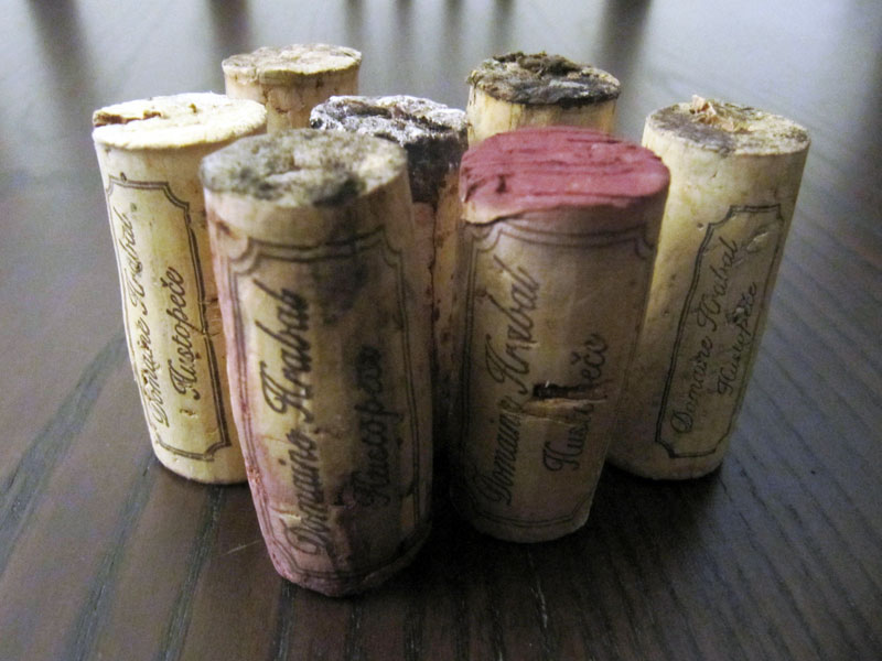 A korky? Úplně obyčejné (foto 4). Až se člověk diví, jak pod nimi ta vína mohou vydržet přes 20 let. No, ve skutečnosti jsem měl u Mirka pod podobným korkem i Sauvignon blanc 1973. A to je 44 let! Hmm.