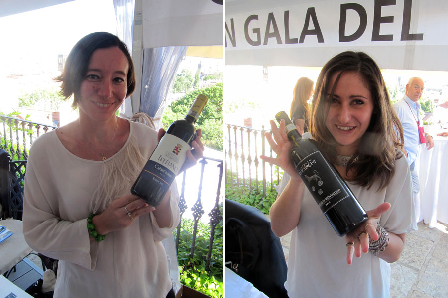 Bavila mě vína od Tenuta di Capezzana prezentovaná hraběnkou Serenou Bonacossi (foto 3a) Villa di Capezzana Carmignano 2013 (více v reportáži z jejich vertikály níže) a Trefiano Riserva 2012 (80 % Sangiovese, 20 % Cabernet a Canaiolo), nadšený jsem byl ze všech červených u Castello Tricerchi. Elegantní a harmonické, přitom chuťové bohaté Rosso di Montalcino 2015 a Brunello 2012 s citrusovou linkou z vápenatého podloží člověka doslova nabádají k dalšímu doušku. Jo, a ta mladá dáma (foto 3b) je partnerkou majitele vinařství Tomassa Squarcii.