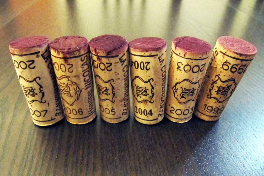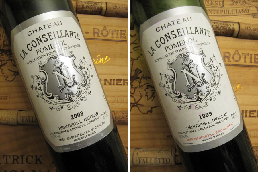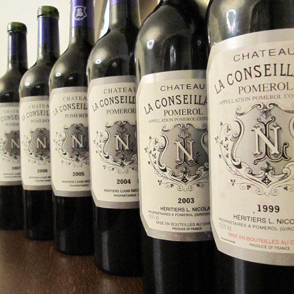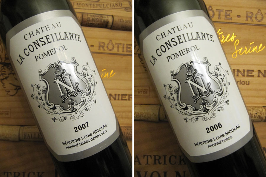 Château la Conseillante, 2007 (foto 2a)Zpočátku spojité a „fialkové“, s ovocným profilem ostružin a švestek, středním tělem a středně plnými ne úplně dozrálými taniny, skvěle vyvážené. Postupně se začínají projevovat nedozrálé zelené tóny a víno ztrácí svou přítulnost. Má stále z čeho brát, ale delší kontakt se vzduchem vytahuje tóny, které, byť nejsou pro tento ročník netypické, mu nesluší. V aktuálním stavu mu stačí otevřít tři čtyři hodinky dopředu, karafu úplně nedoporučuji.