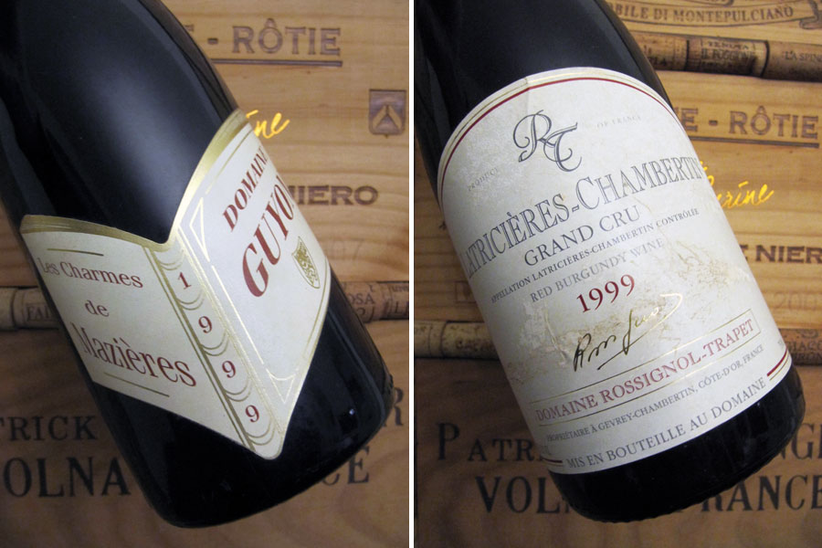 Domaine Rossignol-Trapet, Chambertin Grand Cru, 1999 (foto 3 b) Vůně je mohutná, plná a intenzívní, vrstevnatá a vyvážená, minerálně-ovocná (třešně, višně, peckovina, citrusová linka), s podtónem mintu a ušlechtilého dřeva. Chuť dokonale navazuje. Víno má pevnou a přesnou strukturu, je šťavnaté a noblesní, v těle plné, harmonické, s výraznými vyzrálými hladkými ovocnými taniny a velmi dlouhou perzistencí. Ano, tohle je král. Nejkomplexnější ze všech, má vyváženou ženskou a mužskou stránku. Velké víno.