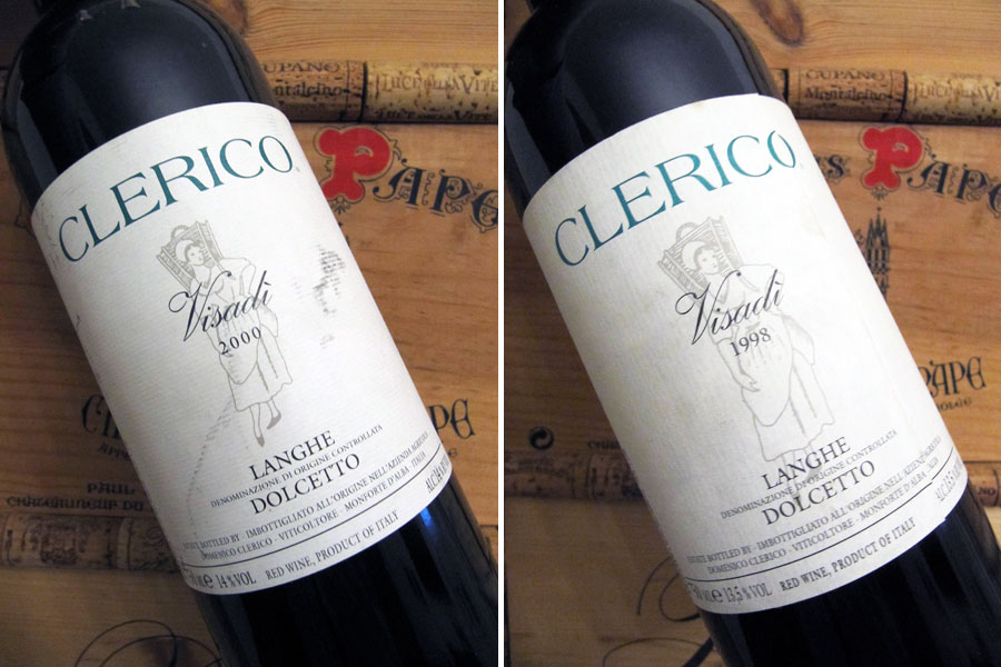 Domenico Clerico, Dolcetto „Visadì“, DOC, 2000 (foto 5a)Vůně je plná, intenzívní a vyvážená směsice žampionů, čajů, starých kompotů z červených plodů, vlhkého podzimního listí, jeřabin, zemitosti a vlhkého dřeva. Chuť na vůni navazuje, jde ale spíš do čajů. Víno je velmi dobře postavené, šťavnaté a vyvážené, v těle plnější, má stále citelné vyzrálé taniny a delší perzistenci. Tento kousek je už spíš pro vinné úchyly. Hodně podzimních tónů, ale stále s perfektní stavbou těla a délkou.