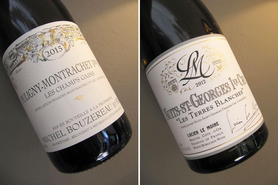 Z dalších vín se mi moc líbí styl Chavy-Chouet, Puligny-Montrachet „Les Enseignères“ 2016 (foto 2b), vyvážené, elegantní a šťavnaté, se skvělým poměrem kvality a ceny. Za 915 Kč je to prostě skvost. Parádní bylo také Puligny-Montrachet 1er Cru „Les Champs Gains“ 2015 (foto 3a) od Michel Bouzereau, tedy za pár let. Vrcholem pak bylo (nepřekvapivě) víno od Lucien Le Moine, Niuts-Saint-Georges 1er Cru „Les Terres Blanches“ 2012 (foto 3b) z naopak překvapivé polohy v N-S-G, podmanivé a plné víno s jemnou texturou, bohatostí a potenciálem zrání.