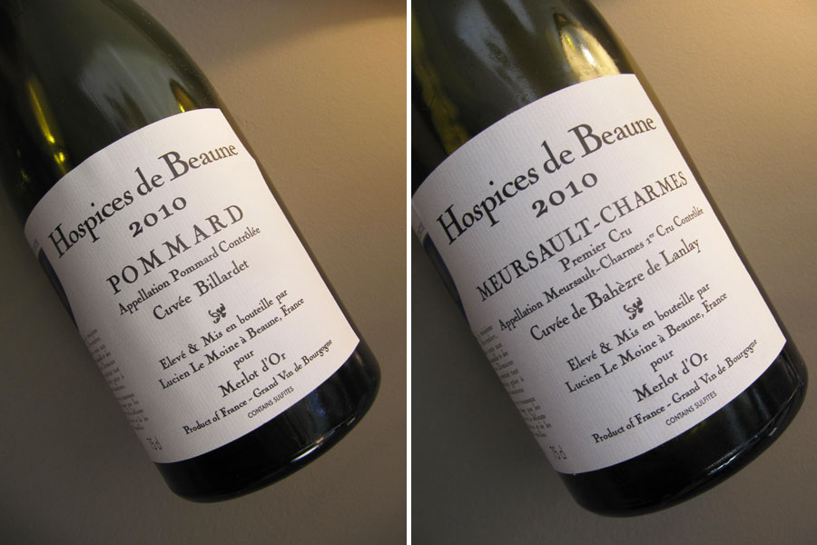 V rámci řízené degustace jsme ochutnali dvě vína (foto 6) z Hospice de Beaune, obě z dílny Luciena Le Moine. Prvním byl Pommard "Billardet" 2010 z keřů starých 30 až 40 let. Třetina je z 1er cru pozemků, dvě třetin z Village poloh. Jedná se o parádně udělané víno, řekl bych až „naturálního“ stylu, živý, plný, stále mladý, s dlouhou perzistencí a potenciálem zrání. Ležel 24 měsíců na kalech, je nefiltrovaný a s minimem přidané síry. Není to úplně typický Pommard, ale je to určitě krásné víno.