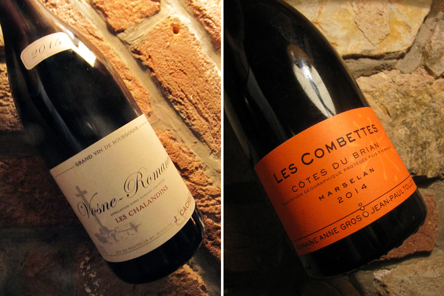 Z červených opět nezklamalo typické a přirozené Rully „Les Chauchoux“ 2015 od Domaine Bellville, hodně pobavilo feminní a podmanivé Vosne-Romanée „Les Chalandins“ 2015 (foto 3a) od Cacheux Jacques & Fils a taky Domaine Gros-Tollot, Les Combettes 2014 (foto 3b), což je odrůda Marselan (kříženec odrůd Cabernet Sauvignon a Grenache) v podání jedné z nejlepších současných vinařek Burgundska Anne Gros.