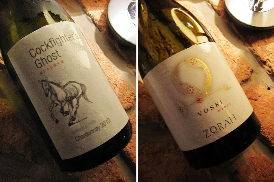 V bílých žádné novinky nebyly, a tak vyzdvihnu jen Cockfighter´s Ghost, Chardonnay "Reserve" 2010 (foto 5a), které mě baví i přes ten dost vysoký sud, a mé oblíbené Zorah, Voskí 2015 (foto 5b), což je cuvée odrůd Voskèak a Garandmak pocházející z vinice 1400 metrů nad mořem v Arménii.
