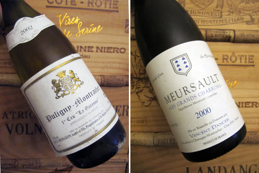 Domaine Moingeon, Puligny-Montrachet 1er Cru „La Garenne“, 2002 (foto 3a)Méně známé vinařství ze St. Aubin, vlastní 10 ha; poloha „La Garenne“ je už v katastru obce Blagny. 2002 je výjimečný ročník (CC 19). Víno se tváří mladší než je, od vůně poměrně přímé, minerálně-ovocné (citrusy, žluté plody), s citelnou slaností. Chuť navazuje, přidávají se bylinky a citrónový čaj. Je velmi dobře postavené, s vysokou kyselinou, působí až přísně, v těle plnější, s delší až dlouhou perzistencí. Zajímavé víno „vesničtějšího“ stylu, které baví.