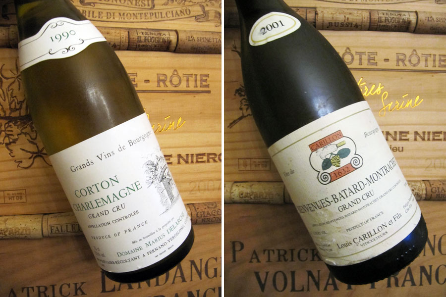M. Delarche, Corton-Charlemagne Grand Cru, 1990 (foto 6a)Menší vinařství z Pernand-Vergelesses, vlastní 8 ha. Ročník 1990 je nadprůměrný (CC 16,5). Vůně je přímá, plnější, středně intenzívní, minerálně-ovocná (citrusy), s tóny mléčného karamelu a výraznou slaností; působí hodně mladě až syrově. Chuť dokonale navazuje. Víno má pevnou a přesnou strukturu, vysokou kyselinku, plnější tělo a přímý průběh, tváří se jako mnohem mnohem mladší, přesto je vyvážené a má dlouhou perzistenci. Zajímavé víno, které „obehrává čas“, a na které se vyplatí si počkat.