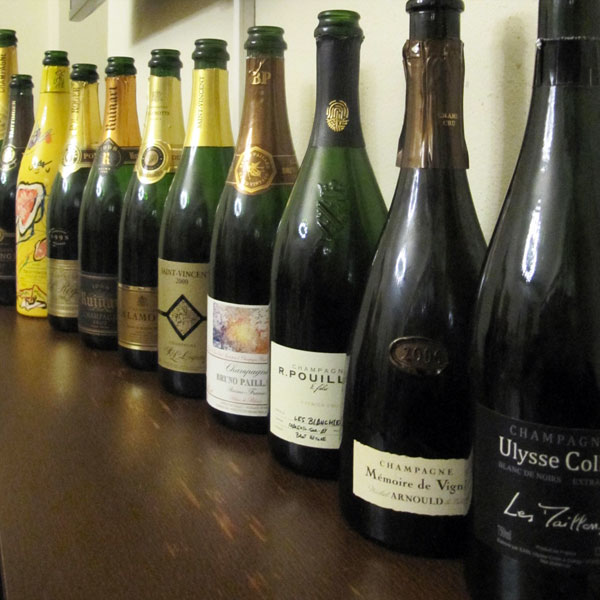 Původně to mělo být srovnání velkých domů se špičkou Growers. Jenže klubový rozpočet vyschl s degustací velkých vín z Chambolle-Musigny a tak přišla na řadu improvizace. Každý přinesl ročníkovou Champagne v určené cenové relaci. Jen poskládat tu degustaci tak, aby dávala smysl, byla slušná šachová partie. Ale výsledek stál za to a některá vína byla famózní.