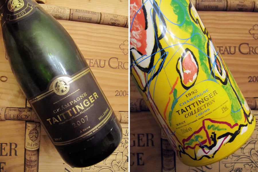 Taittinger, Champagne „Collection“ Brut, 1992 (50 % Ch, 50 % PN) (foto 4b)Speciální ročníková edice, na můj vkus hodně kabaretní lahev, ale moc hezký obsah. Plné, intenzívní, nazrálé a s citelným sudem. Minimální perlení mu sluší, stejně jako čajové tóny na ovocném pozadí. Chuťově komplexní a bohaté, s dlouhou perzistencí. Baví.