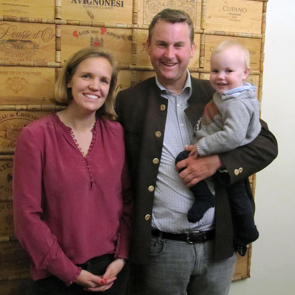 Společně s Felixem dorazila také jeho žena Victoria a nastupující mladá generace, malý princ Augustinus foto 1). Felix zasvěceně odpovídal na všechny otázky a popisoval rozdíly v terroir jednotlivých vinic. Řeč byla samozřejmě o podloží, přívětivost jednotlivých ročníků a vinifikaci a taky o tom, proč mají v logu dvě ryby. :-) Odpověď je vlastně nasnadě. Salm je německy losos a kromě rodného jména byli jeho předci také vášnivými rybáři. Prý byly dříve jejich řeky plné lososů.