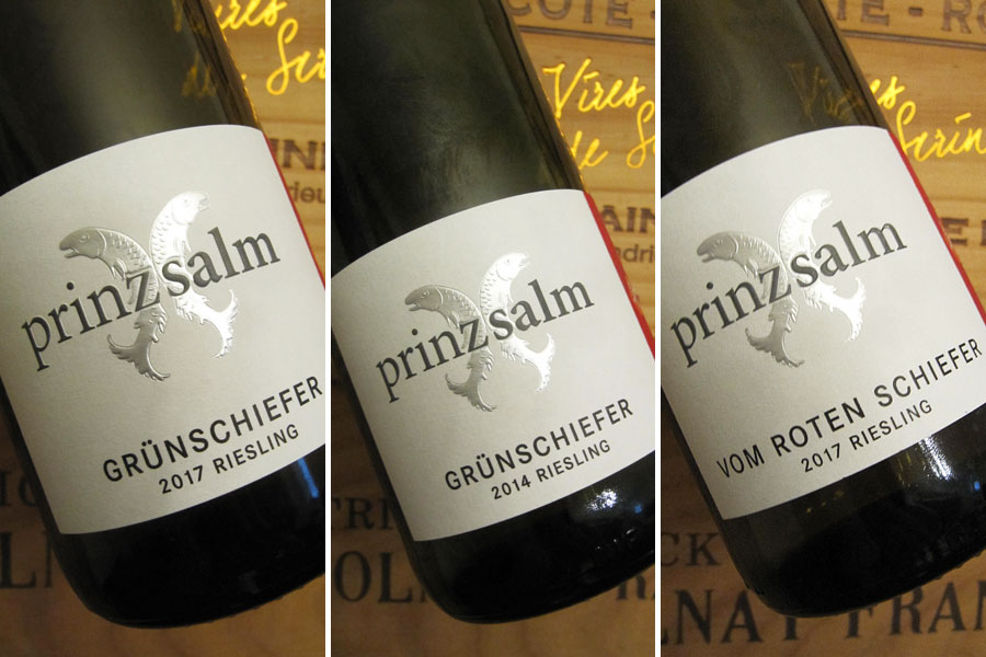 „Grünschiefer“ Riesling, 2017 (foto 3a)Hrozny pocházejí z vinice Felseneck, která má podloží ze zelené břidlice (obsahuje sulfity). Striktní, přímé víno, florální, s citelnou mionerální slaností, náznakem meruněk, v chuti navíc citrusy. Šťavnaté, příjemné a vyvážené, byť zatím mladé víno, v těle střední až plnější, s delší perzistencí.