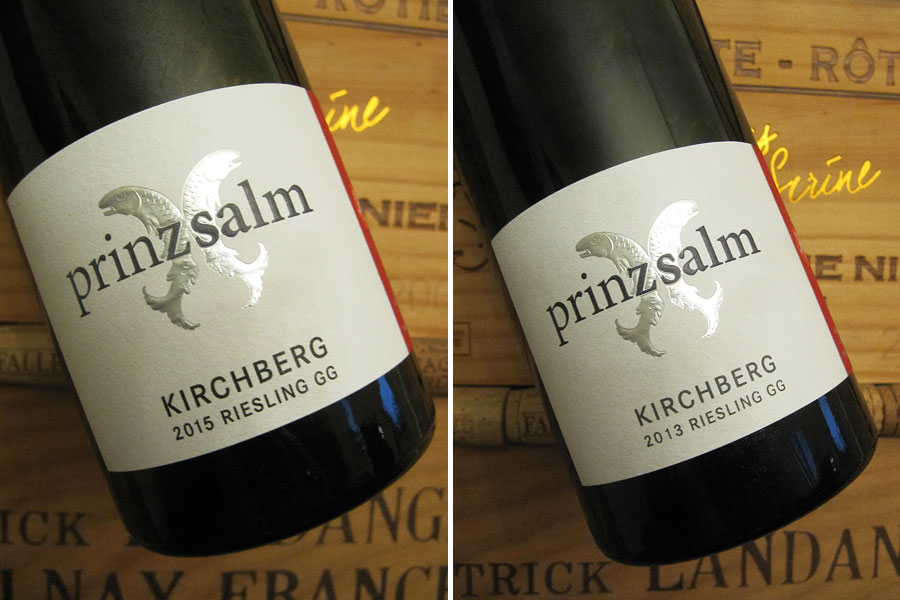 „Kirchberg“ Riesling GG, 2013 (foto 5b)Nazrálé, minerálně-ovocné (žluté plody, i tropické), s tóny medu a soli. Výborně postavené víno, oproti předešlému tenčí, hodně šťavnaté (bohužel s vystupující kyselinou), v těle střední až plnější, s delší až dlouhou perzistencí. Ta kyselina teď působí dost rušivě, snad jí čas trochu učeše.