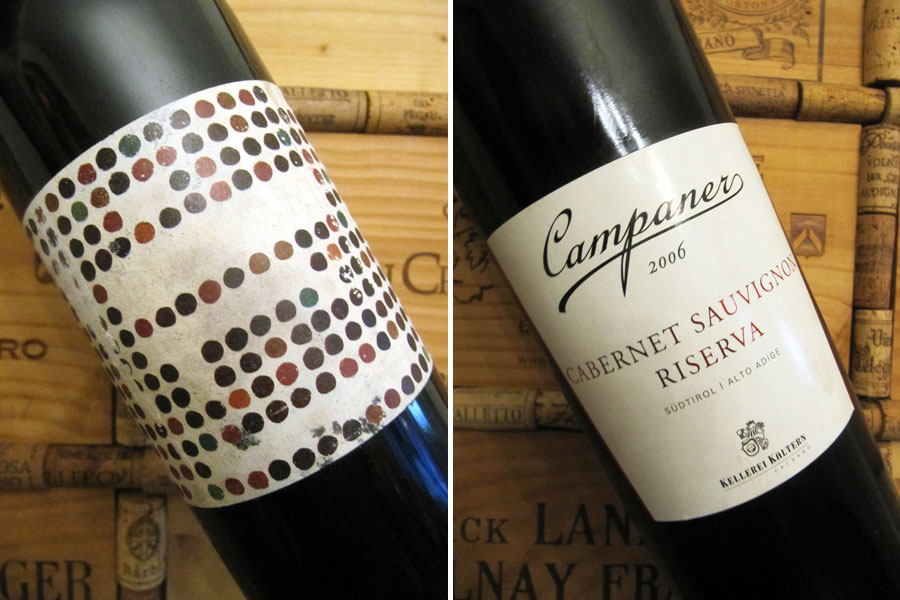 Kellerei Kaltern, Cabernet Sauvignon Riserva „Campaner“, Magnum, 2006 (foto 2b)Intenzívní, aromatické a srovnané, od vůně působí mladě, minerálně-ovocné (černý rybíz, ostružiny), s tóny koření. Velmi dobře postavené, stále hodně ovocné, šťavnaté a harmonické, v těle střední, s citelnými vyzrálými taniny a delší perzistencí. Moc hezký Cabernet s vynikající pitelností.