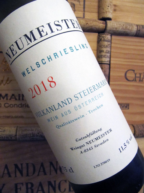 Welschriesling „Vulkanland Steiermark“, 2018 (foto 1)Vůně je hodně mladá, přímá a poměrně intenzívní, středně plná a na vlašák dost přísná, minerálně-ovocná (citrusy, žluté plody), s lehkou kouřovostí a citelnou slaností. Chuť navazuje, přidává se hořčinka citrusů i mandlí. Víno je velmi dobře postavené, krásně šťavnaté a srovnané, v průběhu přímé, osvěžující a výborně pitelné, s delší až dlouhou perzistencí. Pro „české/moravské“ vnímání průběhem ne úplně typický vlašák (byť chutě a vůně typické jsou), je hodně přímý až přísný, se zajímavou kouřovostí danou vulkanickým podložím. Člověka ho prostě baví pít hned, ale další pobyt v lahvi mu jen pomůže.